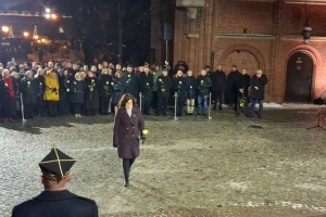 Zlożenie kwiatów przy tablicy pamiątkowej