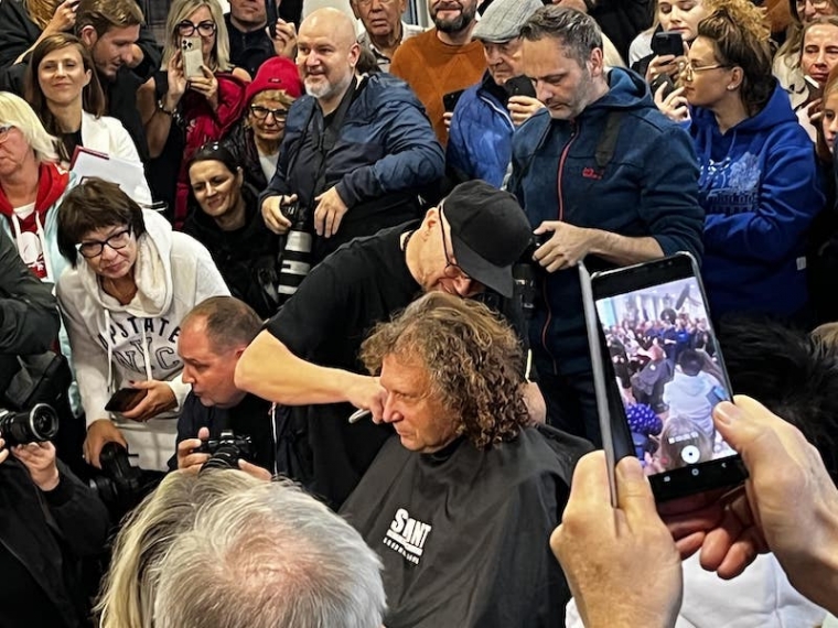 Kilkadziesiąt osób odpowiedziało na zaproszenie prezydenta i stawiło się w południe w Operze Leśniej. Pewnym zawodem, głośno wyrażanym przez zebranych było to, że strzyżenie odbywało się nie na scenie a w ciasnej garderobie, którą w dodatku dość szczelnie wypełnili przedstawiciele mediów. Dostanie się do środka graniczyło z cudem, a nawet to nie gwarantowało dostrzeżenia Karnowskiego podczas tej wiekopomnej chwili.