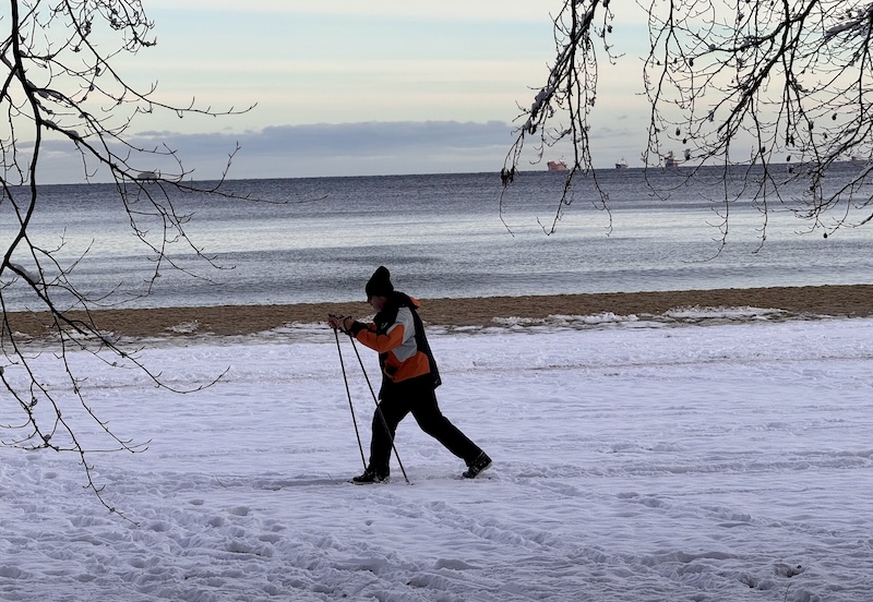 Na zdjęciu otrzymanym od Czytelnika amator biegówek na plaży między Sopotem a Gdynią Orłowo.