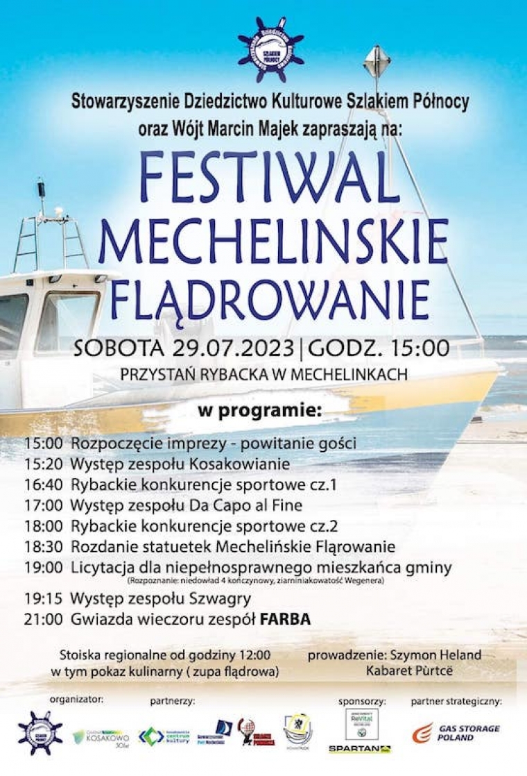 Dziś w Mechelinkach w Gminie Kosakowo odbywa się Festiwal Mechelińskie Flądrowanie organizowany przez Stowarzyszenie Dziedzictwa Kulturowego Szlakiem Północy oraz Wójta Marcina Majka.