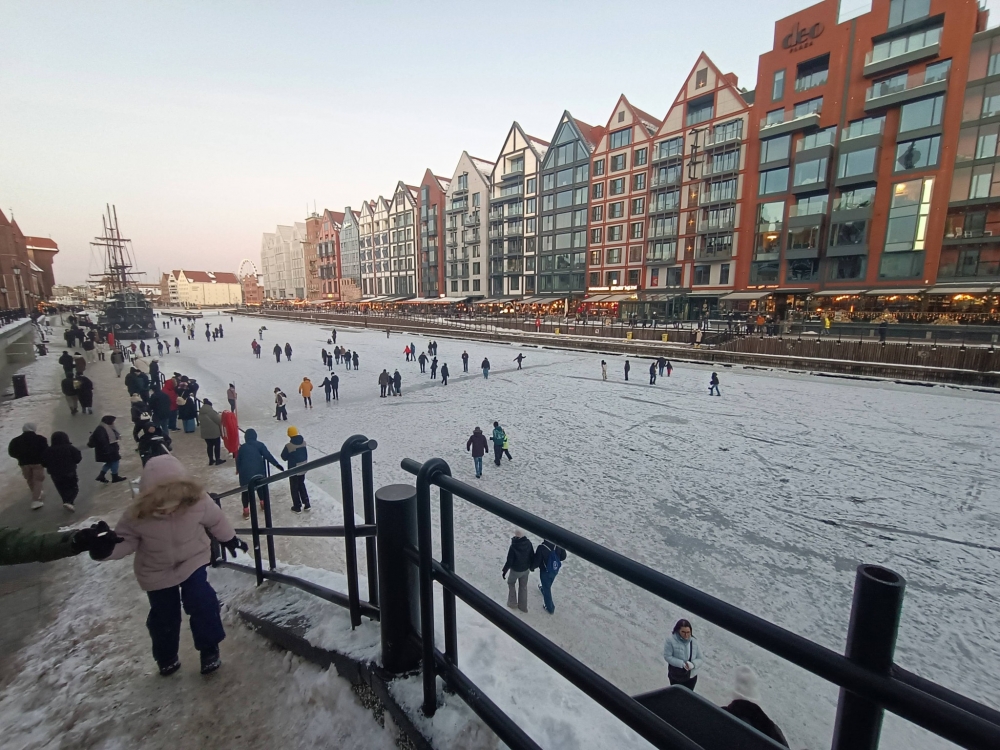 31 stycznia w późne popołudnie w Gdańsku wzdłuż Motławy byłem na spacerze która zamarzła To nowa atrakcja turystyczna końcówki ferii zimowych